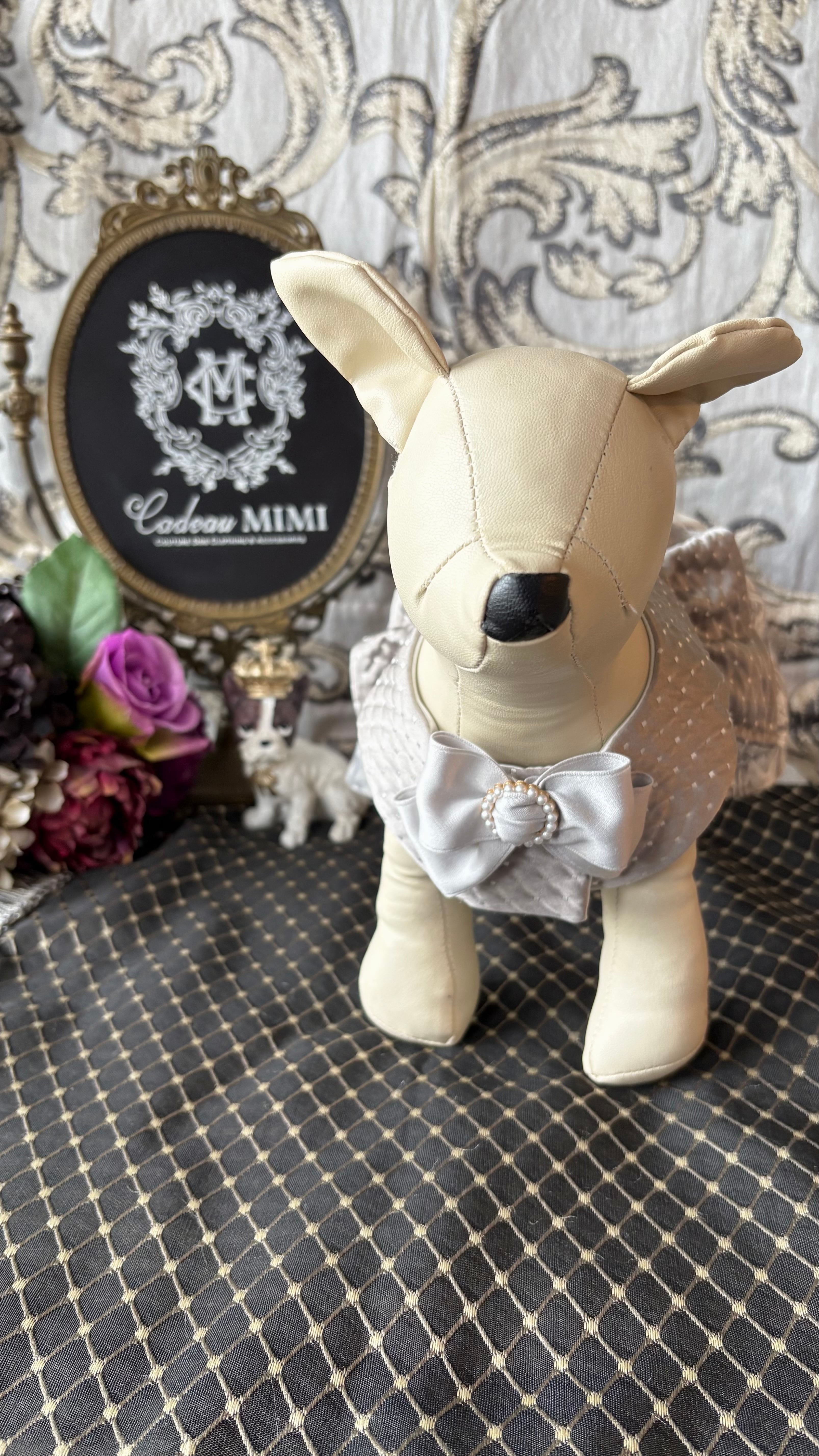 前襟元にはパールバックルのリボン